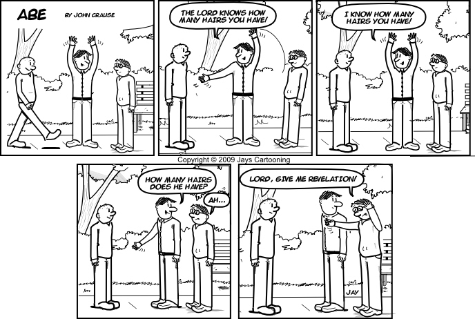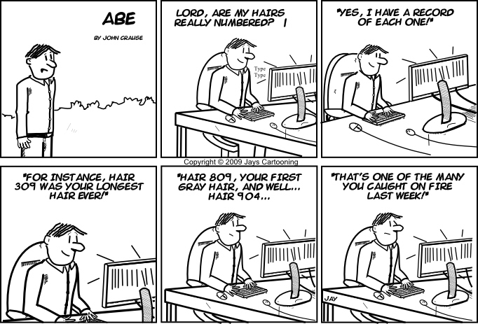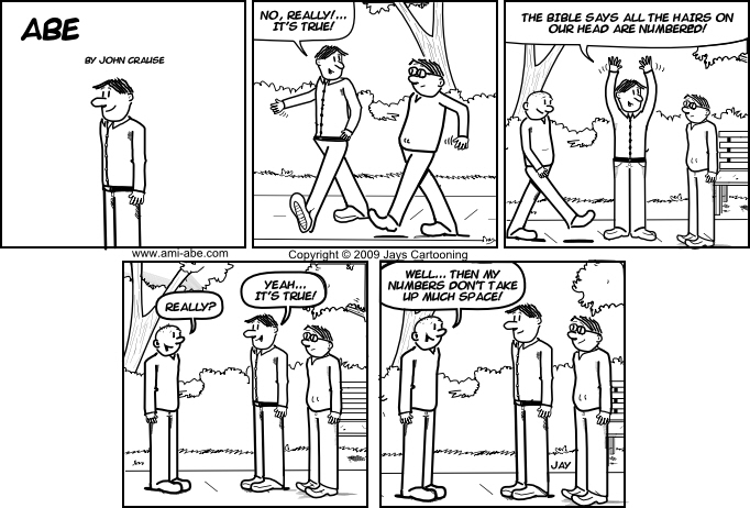 Abe continues to spread the news about the hairs on your head being numbered. Luke 12:7