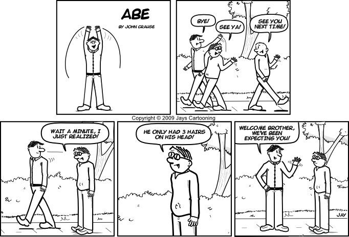 Abe and Ed speak with their new friend about how many hairs are on his head.
